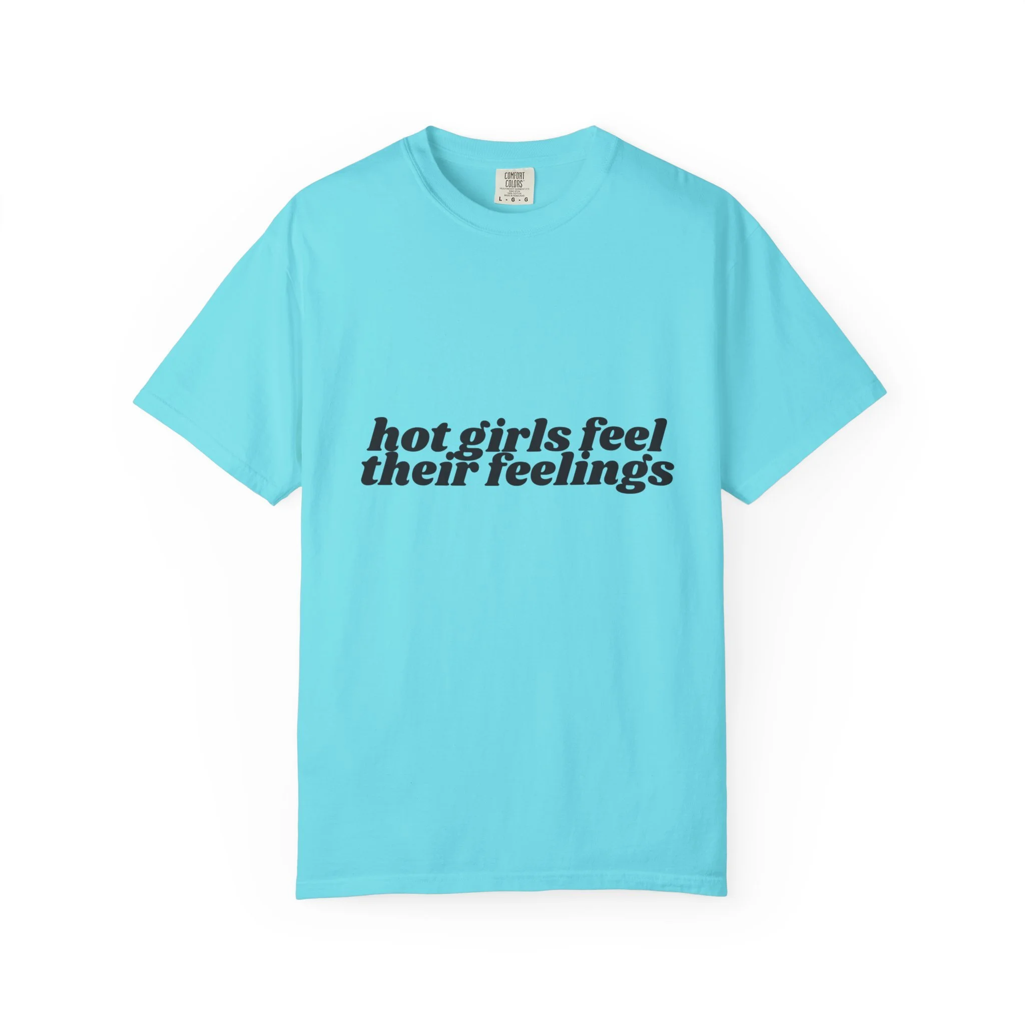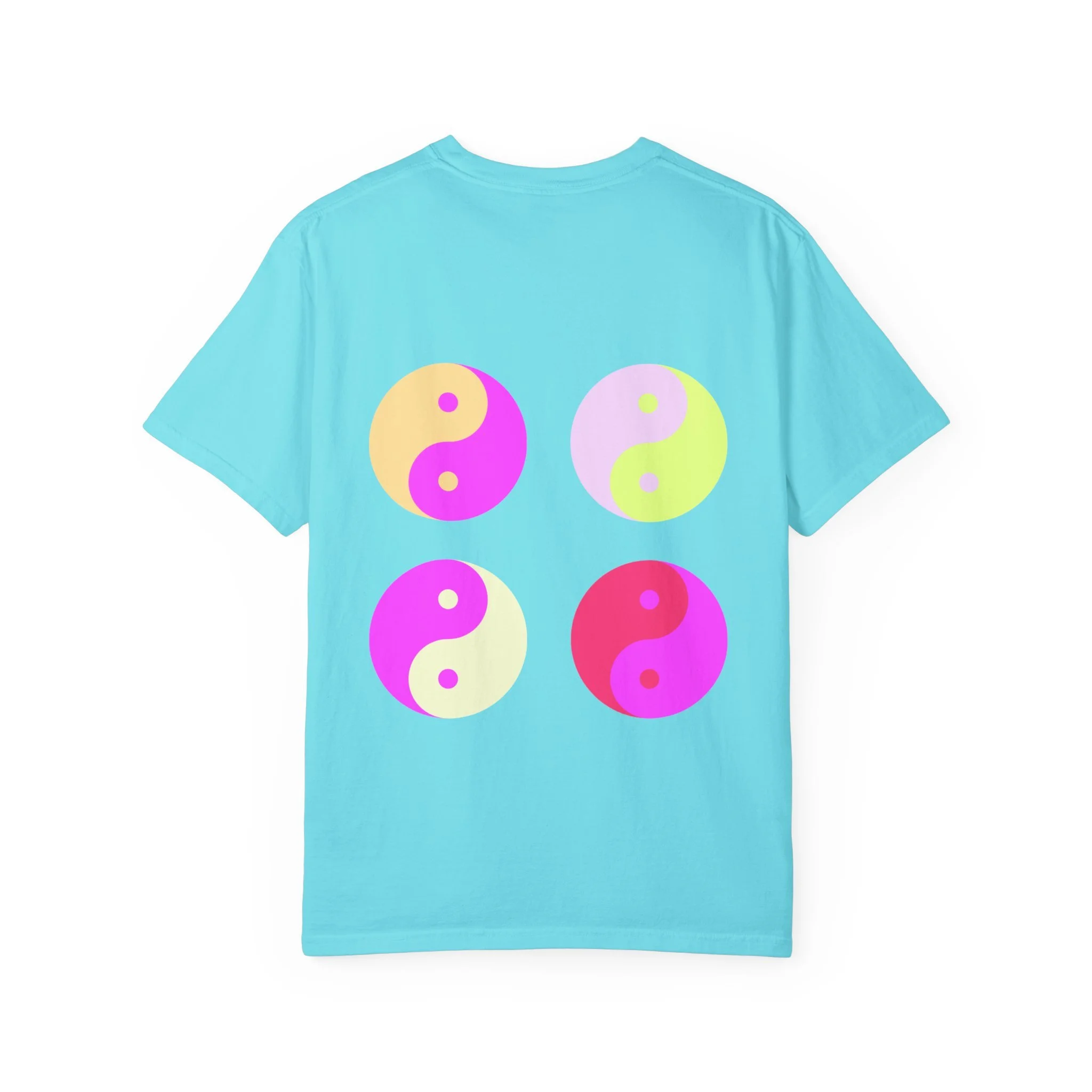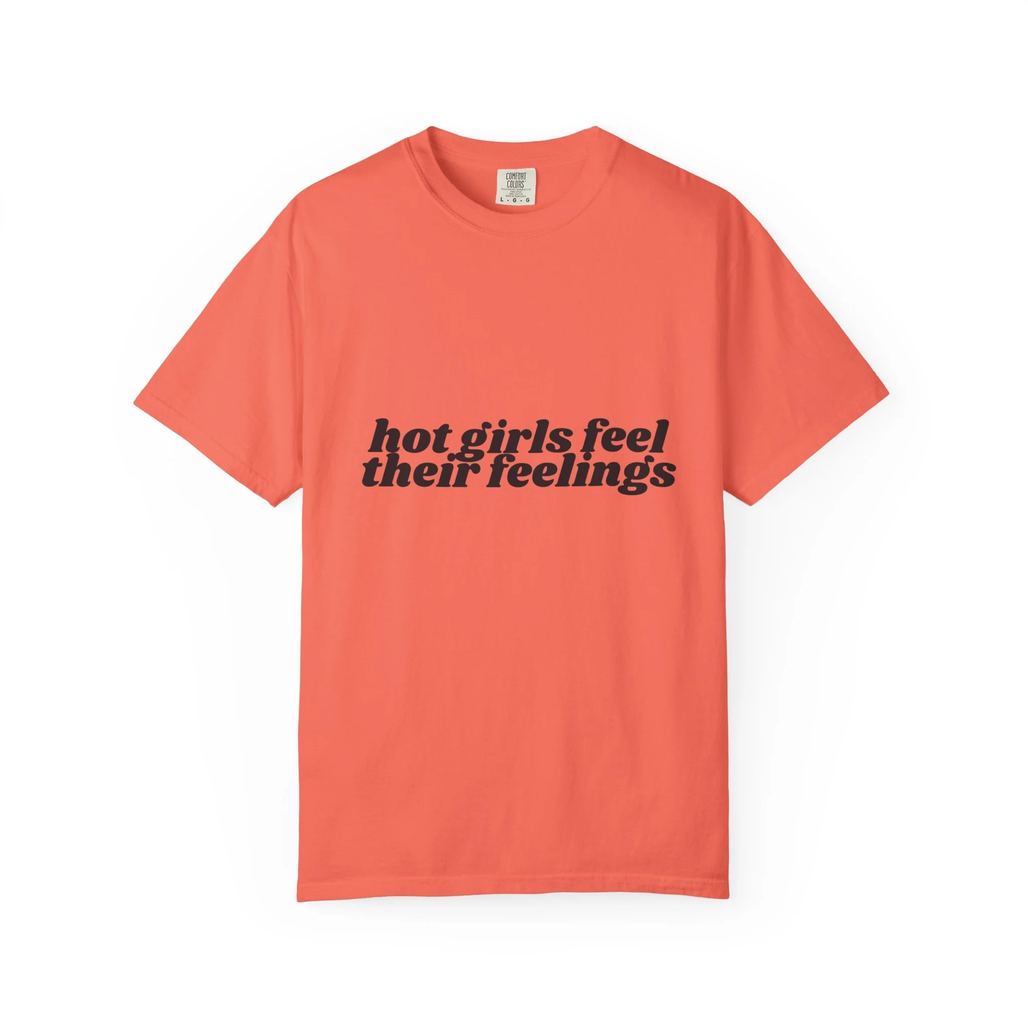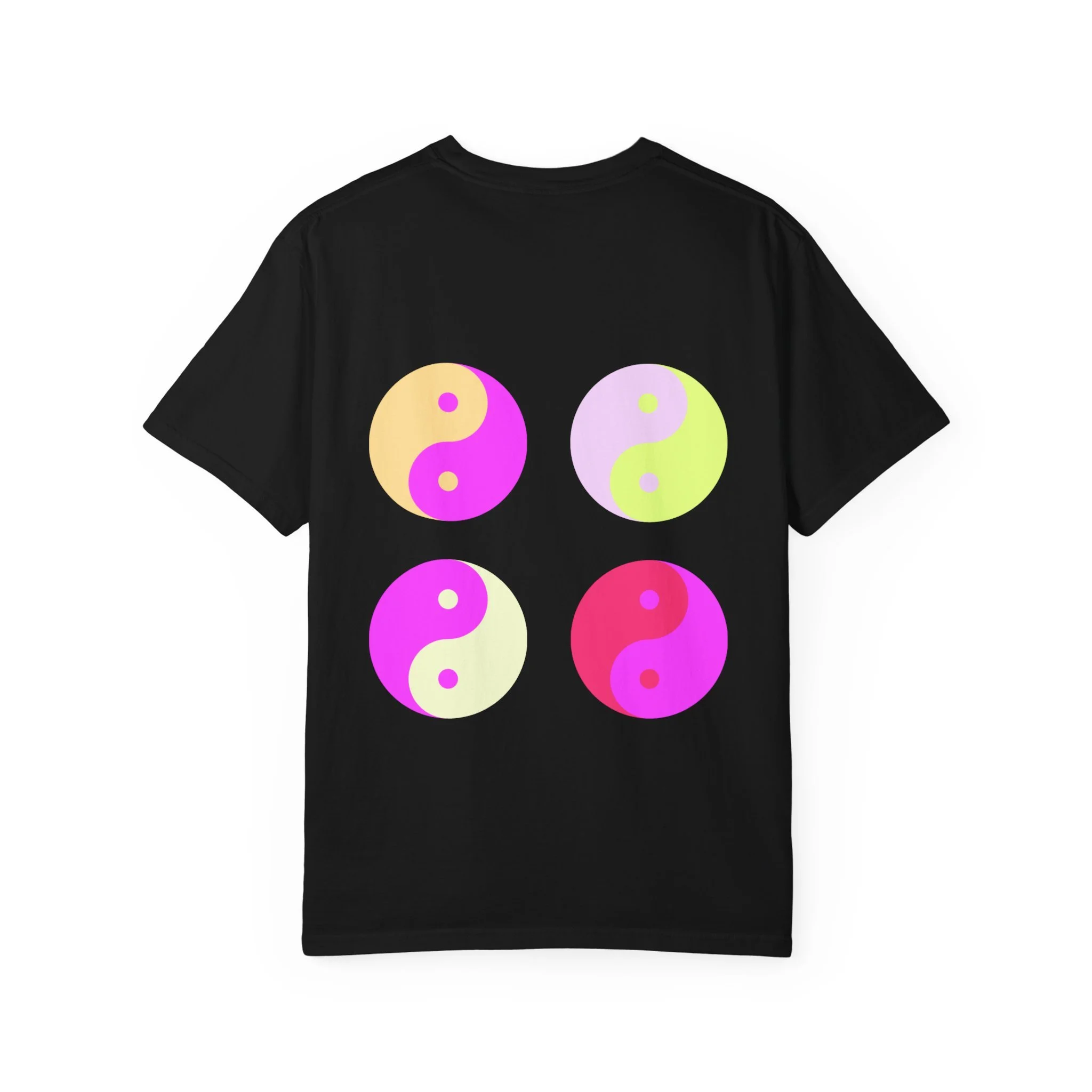 This relaxed, garment-dyed tee carries a confident, playful mood — softly worn fabric with bold, ironic messaging. The front reads “hot girls feel their feelings” in a vintage-inspired serif, while the back shows four neon yin-yang motifs in pop pinks and citrus tones. It feels like a late-night conversation with friends: sincere, a little cheeky, and fully comfortable in its own skin. Wear it to slow mornings with coffee, crowded gigs, or long walks where you’re both vulnerable and unbothered. The heavyweight cotton hangs just right and softens even more with each wash, so the shirt becomes part of your everyday rhythm instead of an afterthought.