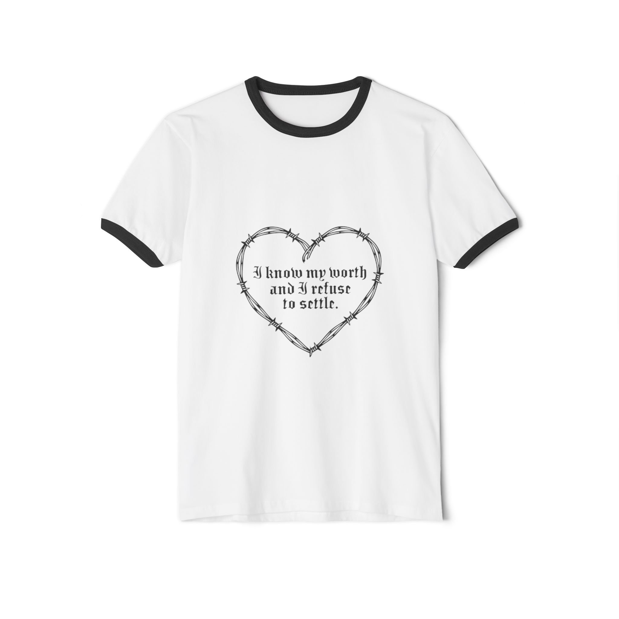 I Know My Worth Ringer T‑Shirt — Barbed Heart Self‑Worth Graphic Tee